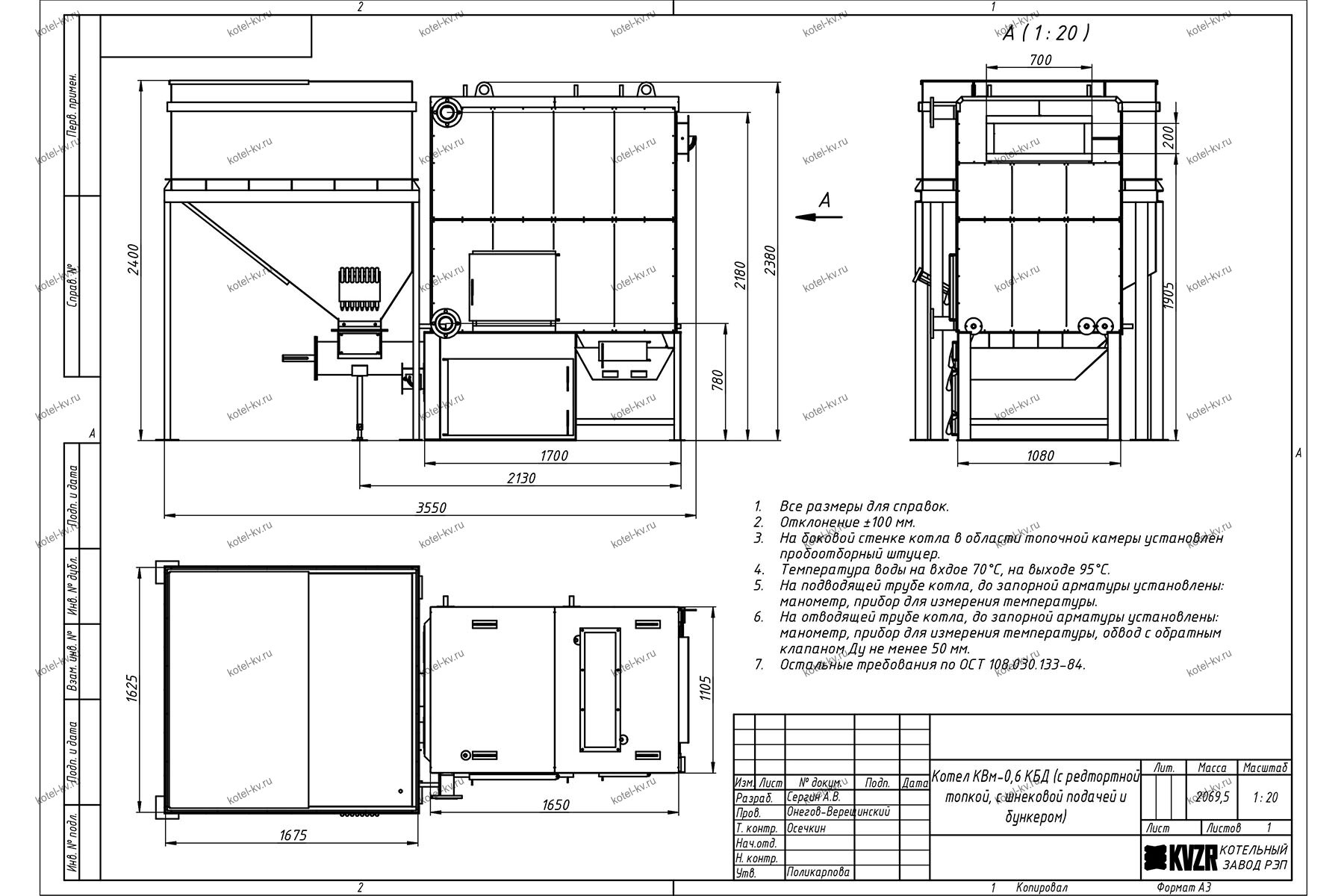 Угольный котел 600 кВт с автоматической подачей конструктивно состоит из следующих блоков: